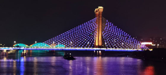 宿遷的夜景也讓人流連忘返,宿遷大橋、楚街、古黃河兩岸、雙塔公園,目光所及之處,盡是霓虹閃爍,流光溢彩。
